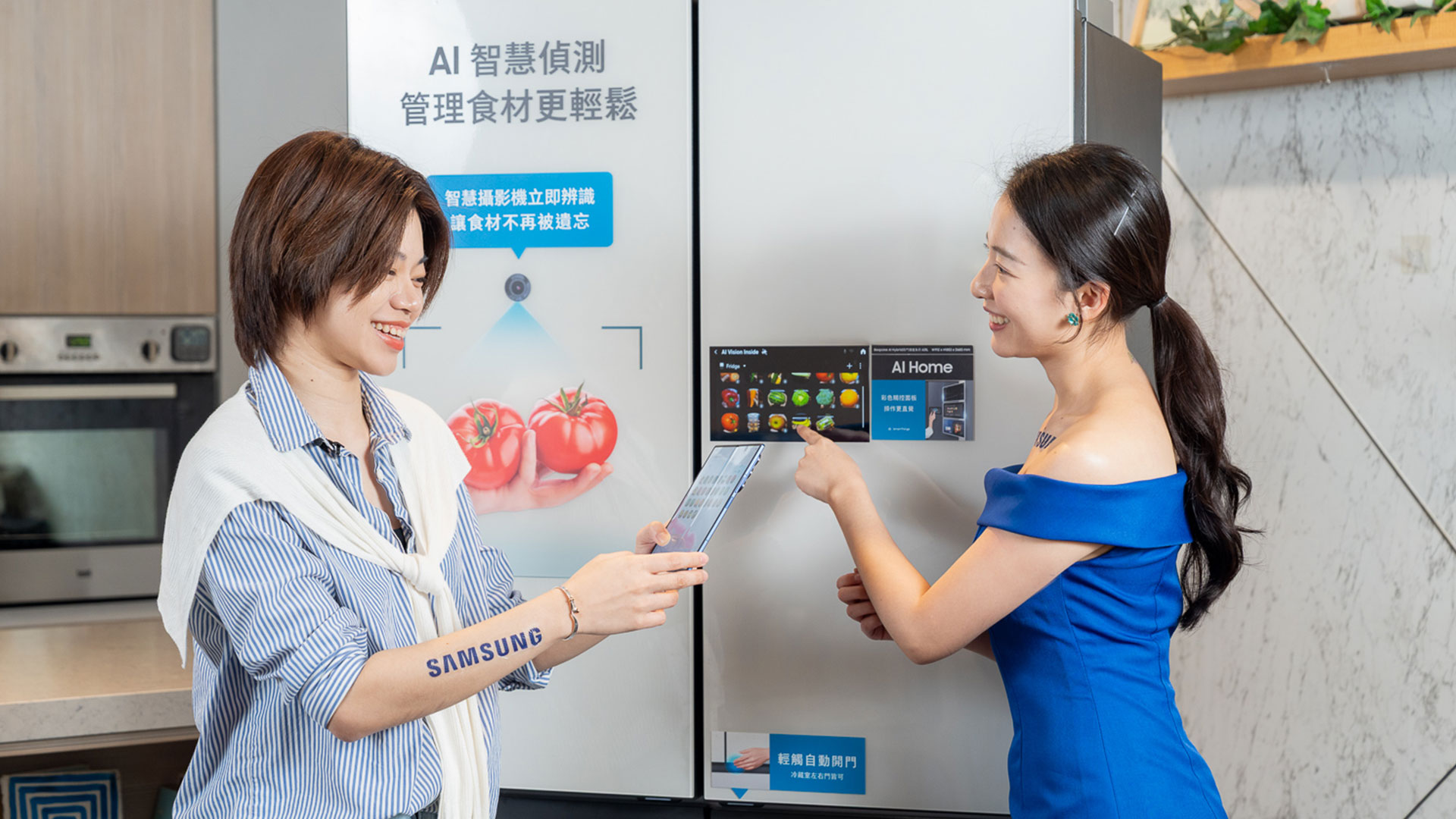 三星電子Bespoke AI Hybrid 四門旗艦冰箱新品上市,為強化食材採買管理、居家料理等冰箱使用情境,特選定知名餐廚空間,並邀請擅長中西混搭料理的餐廚意見領袖,現場演繹 AI 冰箱如何創造便利質感生活!現場除示範透過「AI Home」全彩觸控螢幕與Bixby語音智慧助理互動,透過聲控搜尋食譜、播放音樂及開門指令;亦展演 AI 智慧鏡頭偵測食材,搭配三星手機SmartThings應用程式智慧,進行食材管理,以實際情境將三星 AI 冰箱核心技術轉化為可被實際感受的便利生活體驗。